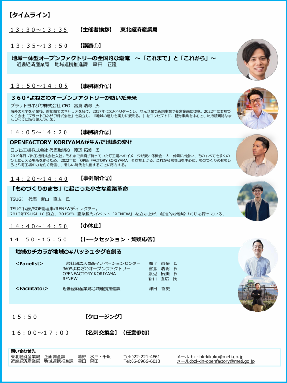 登壇されたパネリストの皆さんは地域一体型オープンファクトリーのキーパーソンとしてご活躍されており、